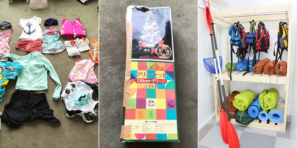 例えば、冬タイヤ、衣替えした服、扇風機、旅行カバン、スノーボード、キャンプ用品、レジャーグッズ、卒業アルバム、思い出のつまった写真や手紙、まだ使うかもしれないベビーグッズ、趣味で作ったプラモデル、いただきもののお皿やタオル類などなど……。
